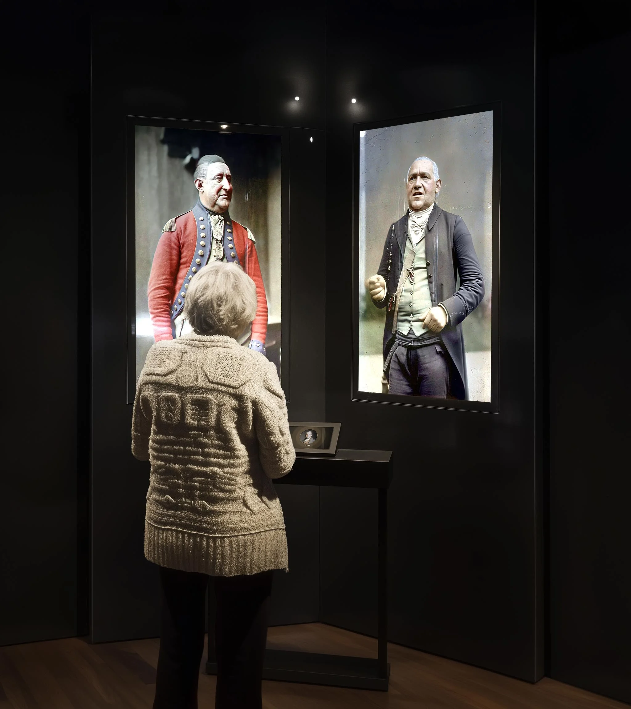The museum’s color palette was developed by analyzing thousands of 18th-century oil paintings with AI to extract the most recurring tones of the Revolutionary era. Curated into a final system, these colors reflect the emotional weight of the period, shaping the exhibition atmosphere rather than serving as decoration.